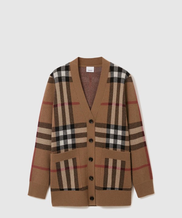 체크 울 캐시미어 가디건