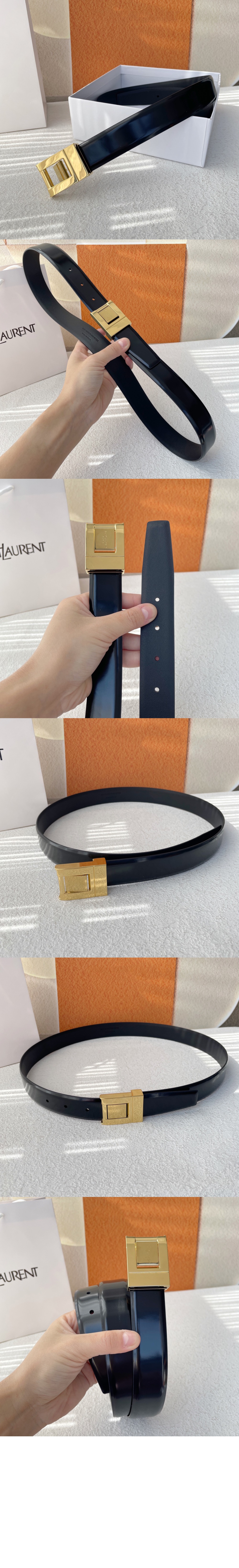 부드러운 가죽 소재의 생 로랑 스퀘어 버클 벨트 733514
