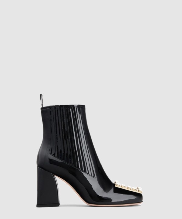 스트라스 버클 에나멜 앵클 부츠 5222