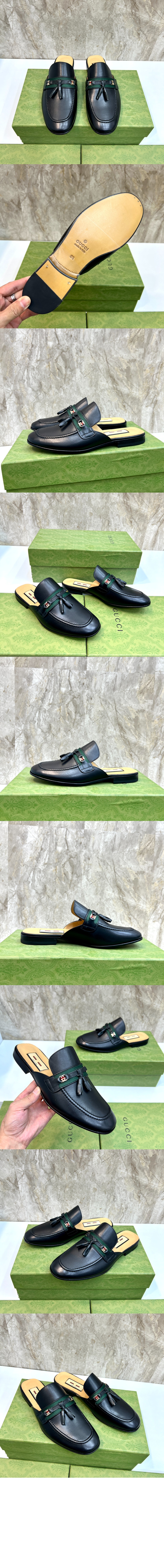 GG 웹 디테일 가죽 로퍼 469891