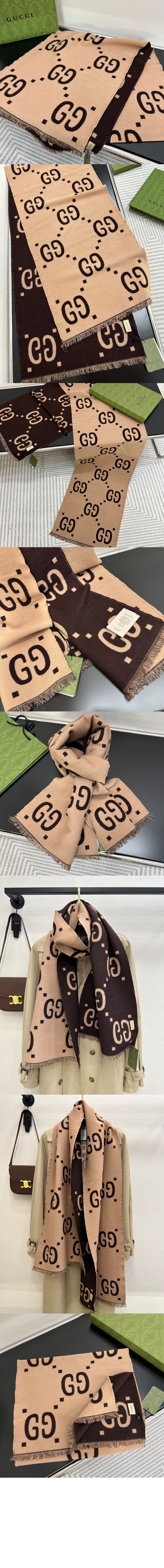 GG 자카드 울 실크 스카프 495592