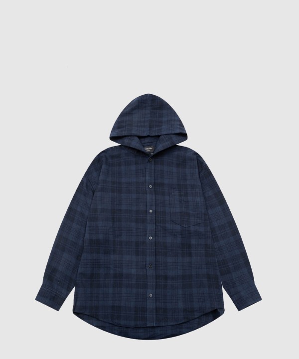 체크 후드 셔츠 코트