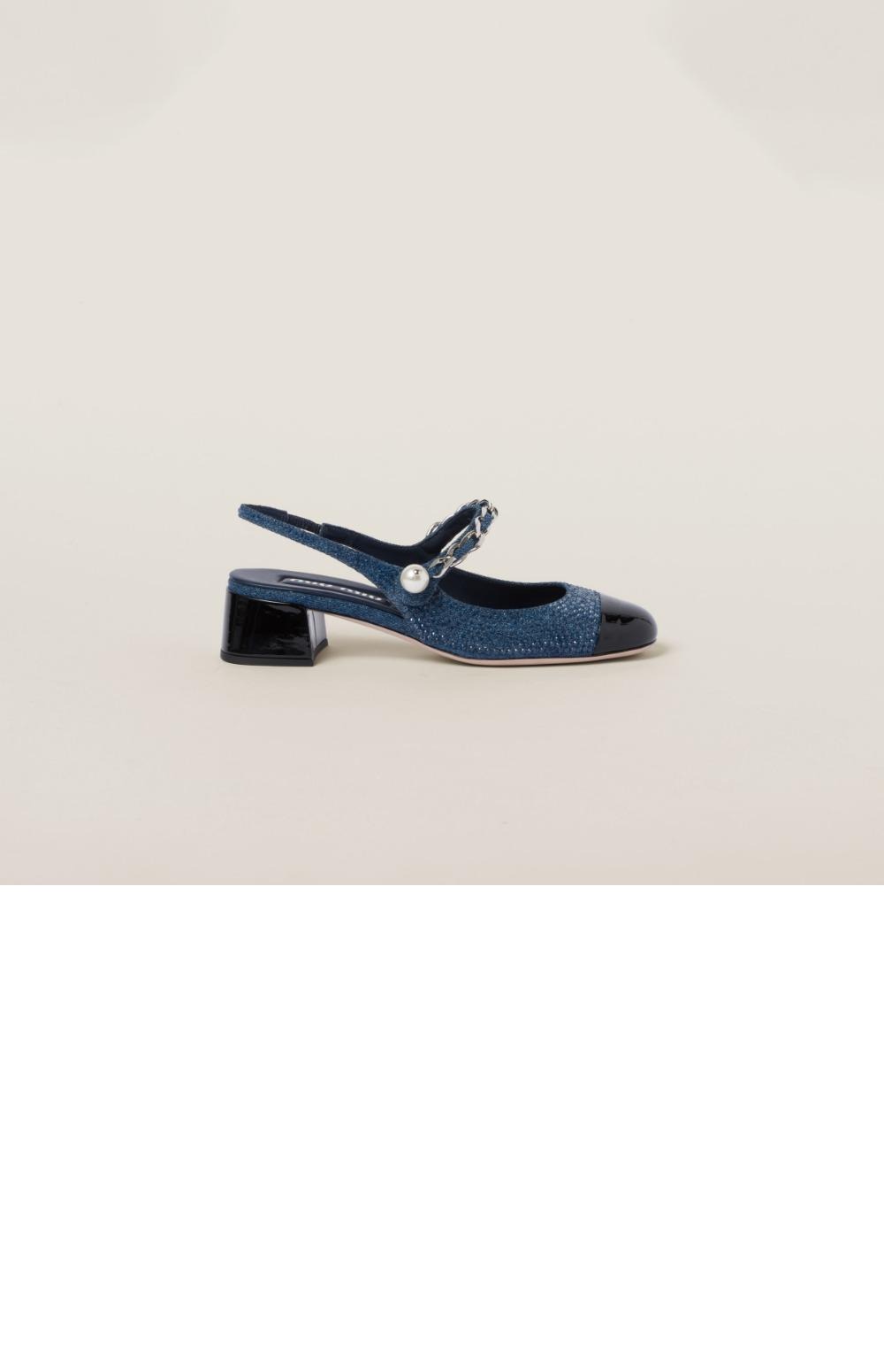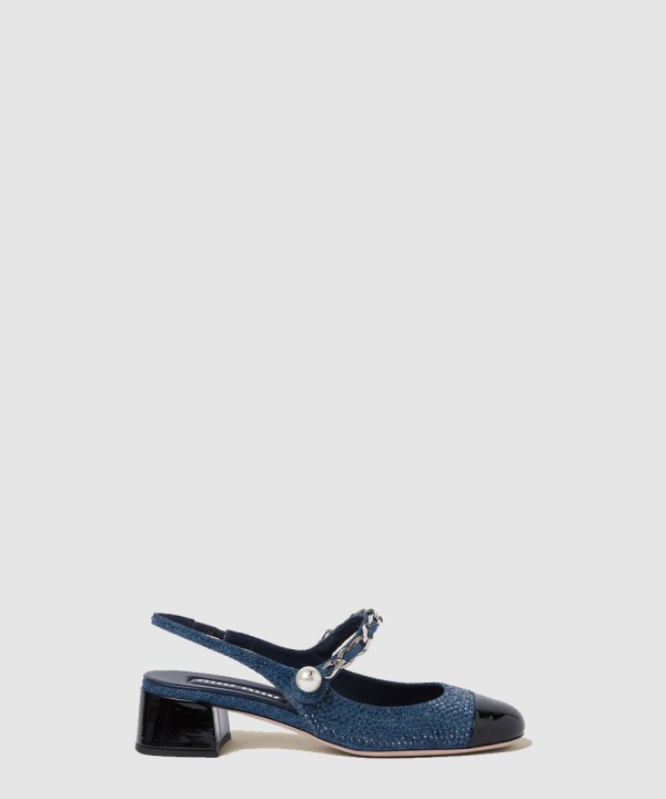 데님과 페이턴트 가죽 슬링백 펌프스 5I048E