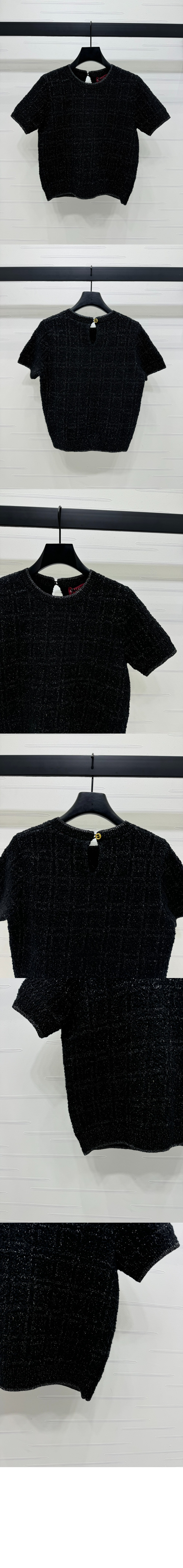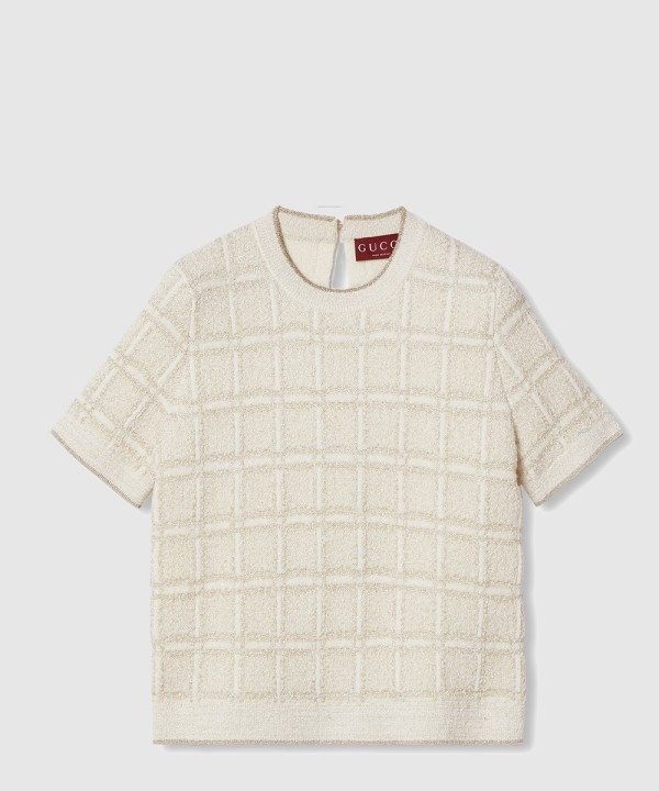 울 및 라메 체크 자카드 탑