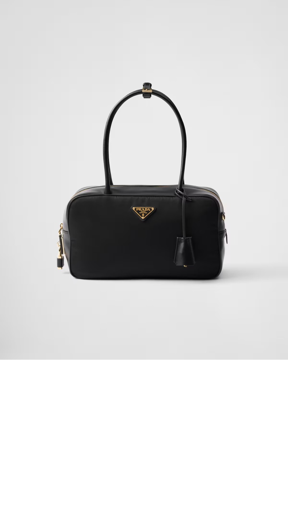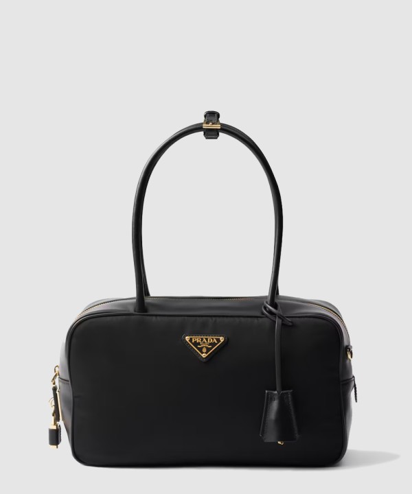 자물쇠가 있는 미디엄 리나일론 및 가죽 탑 핸들백 1BB132