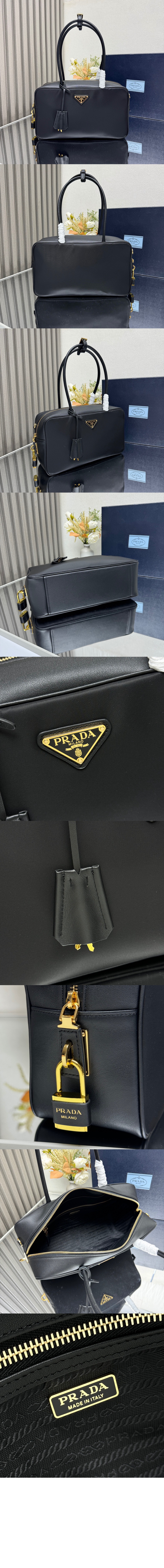참이 달린 라지 프라다 소프트 사운드 가죽 숄더백 1BD378