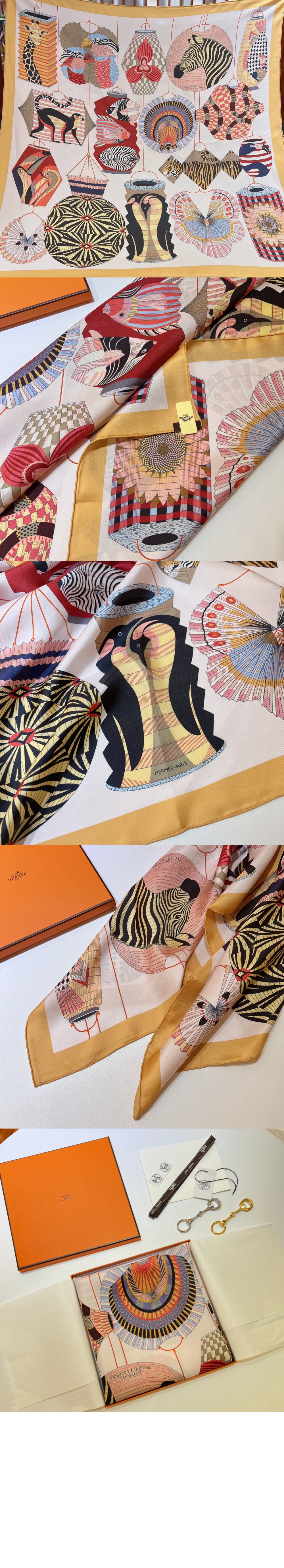 Lanternes, Ballons et Cocardes 90 까레 실크 스카프
