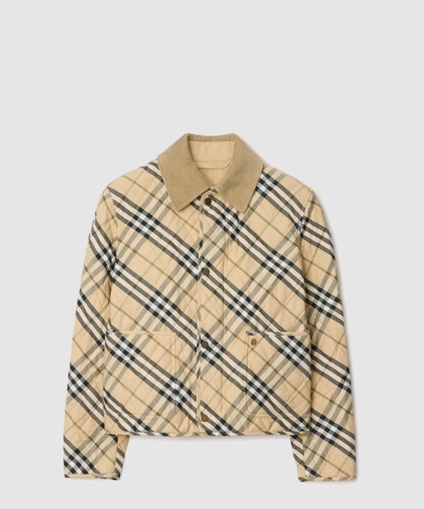 크롭 체크 퀼팅 반 재킷