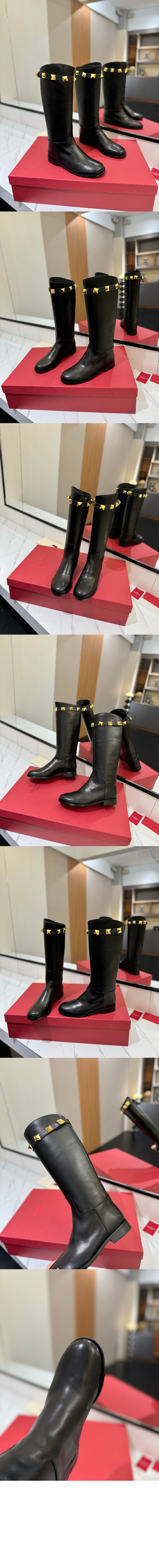 송아지 가죽 로만 스터드 부츠