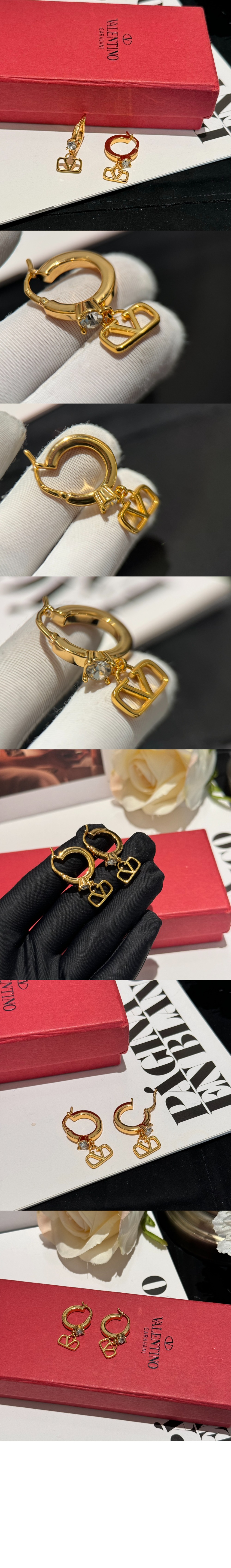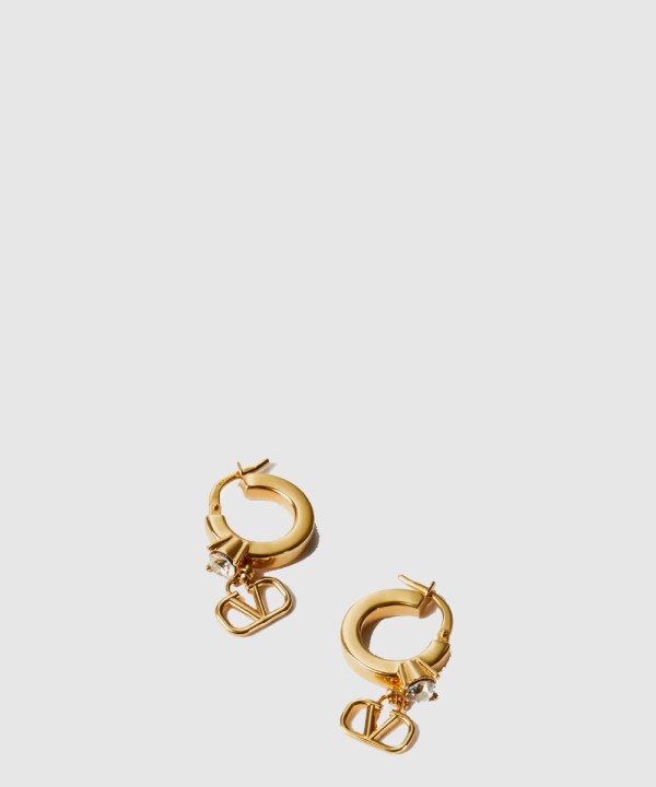 크리스털 장식 미니 브이로고 시그니처 메탈 이어링