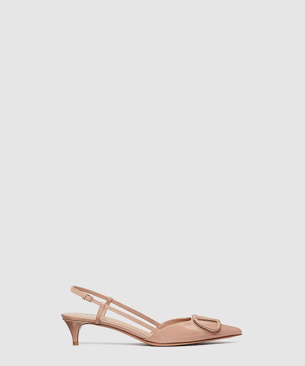 페이턴트 가죽 브이로고 시그니처 슬링백 펌프스