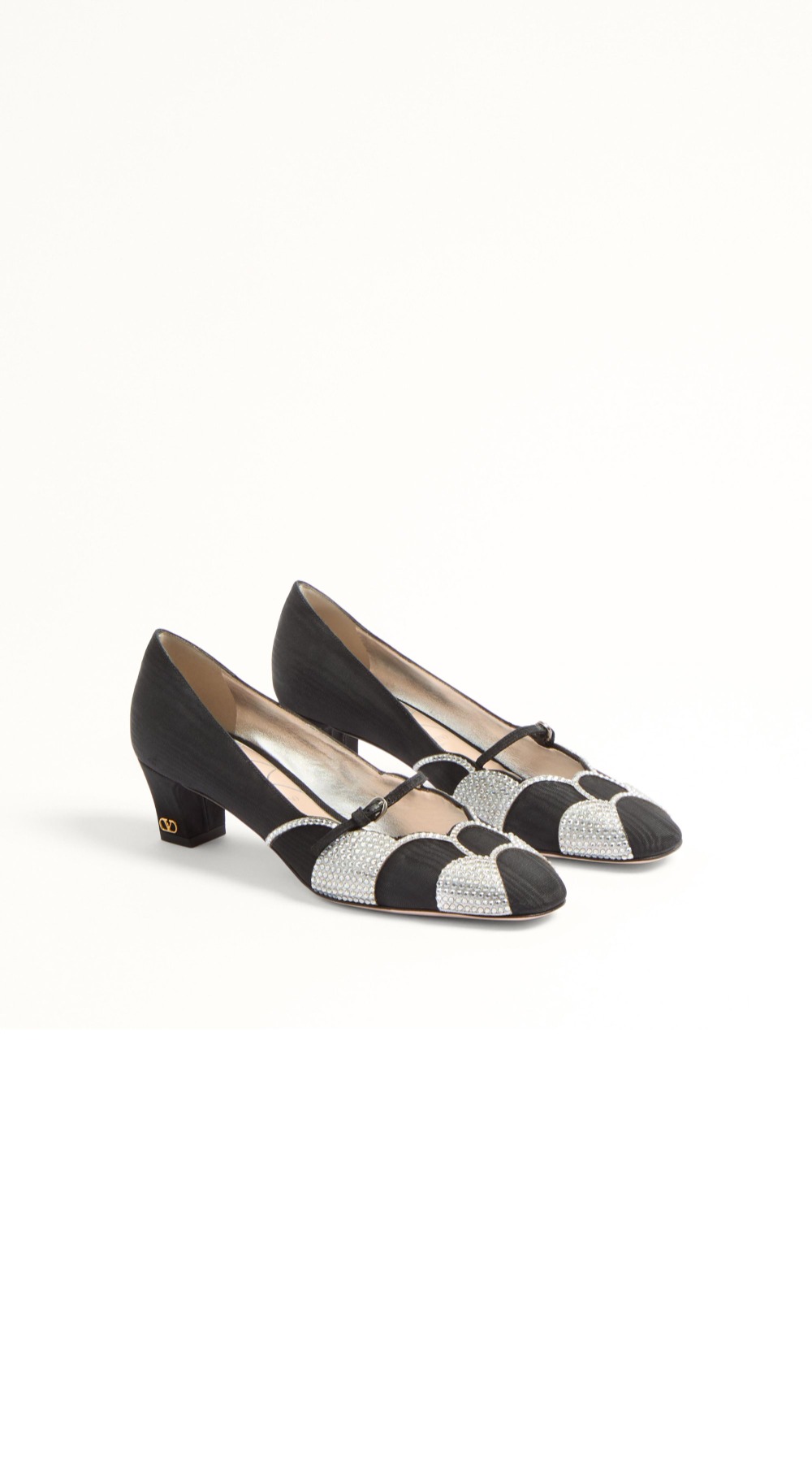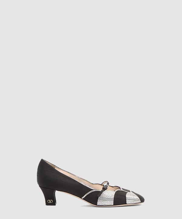 보와우 크리스털 디테일 무아레 패브릭 펌프스