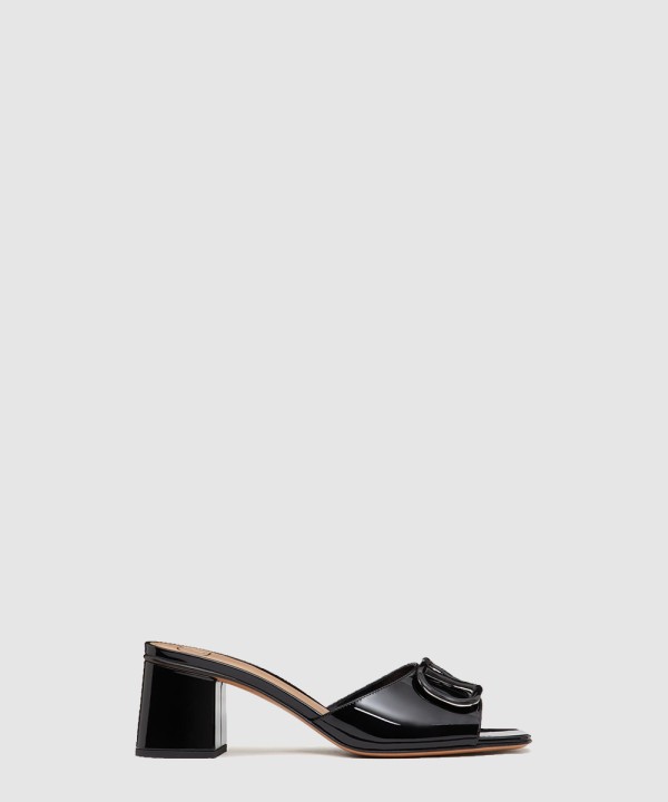 브이로고 시그니처 페이턴트 가죽 슬라이드 샌들