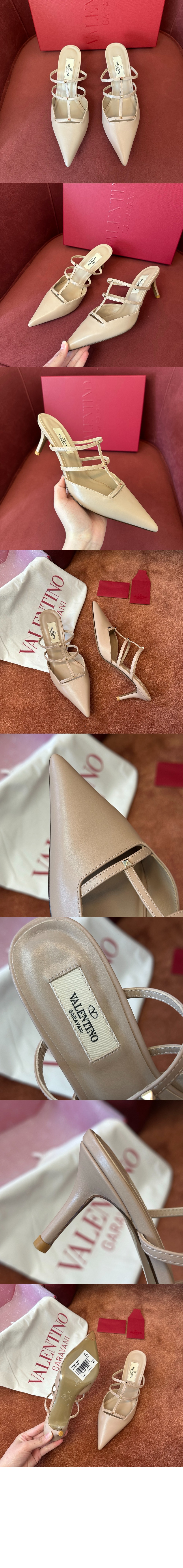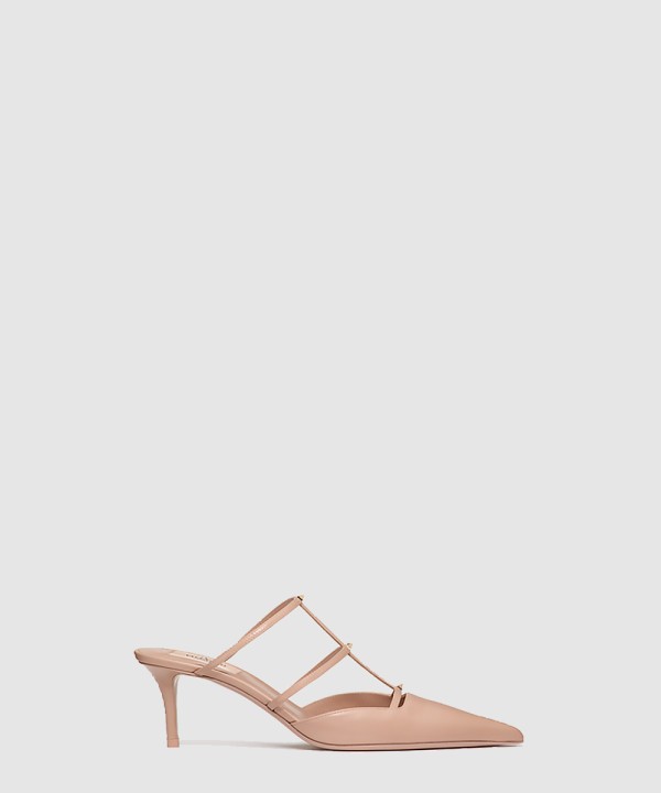 로만 스터드 송아지 가죽 플랫 뮬