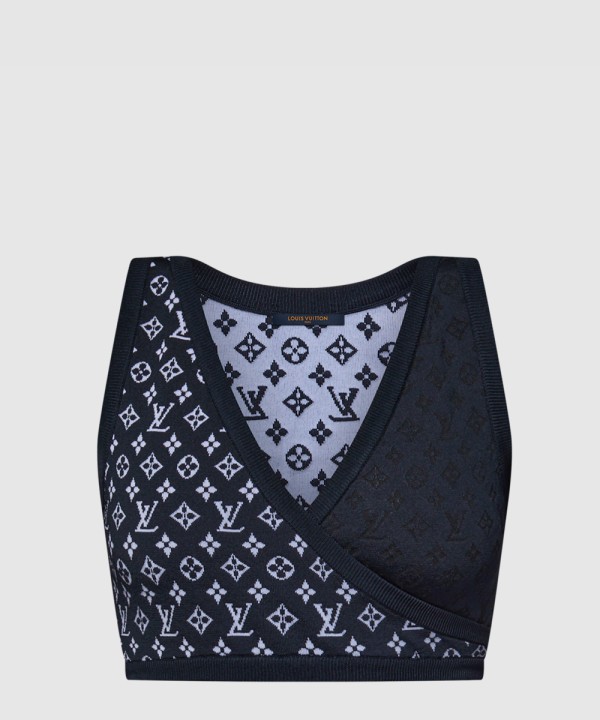 모노그램 자카드 니트 크롭 탑