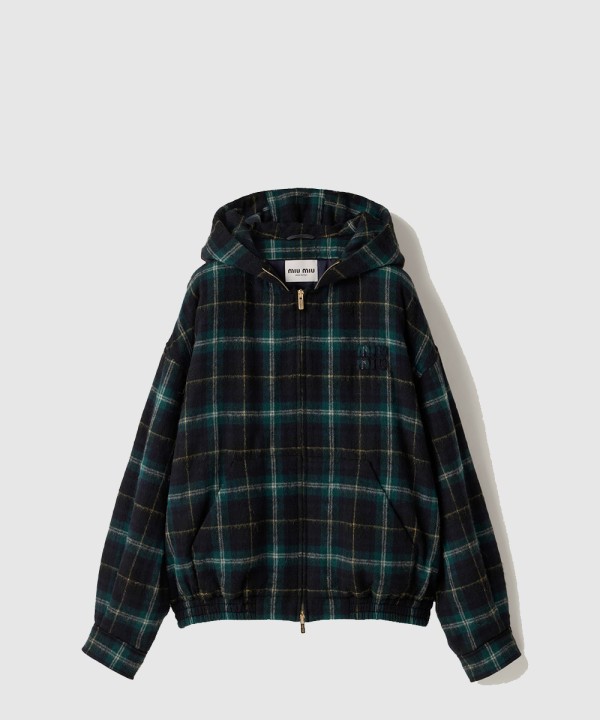 체크무늬 후드 재킷