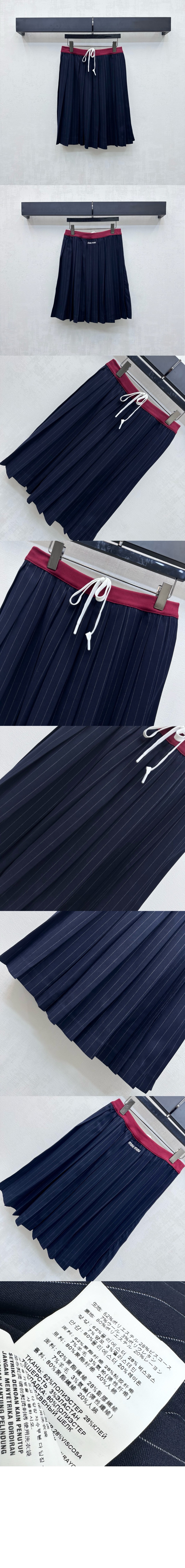 플리츠 핀스트라이프 미디 스커트